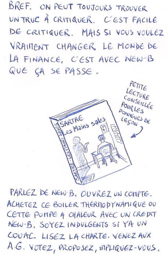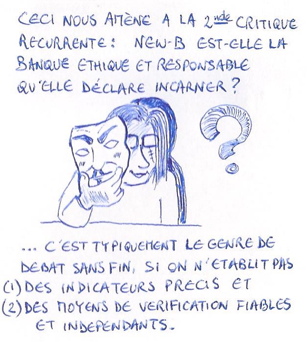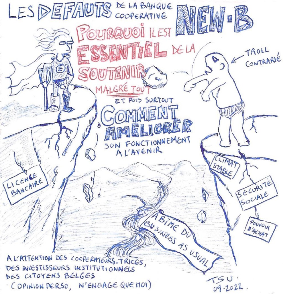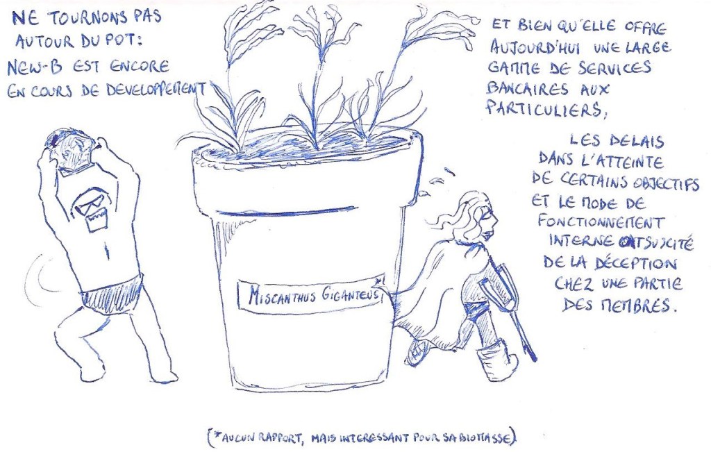 Les défauts de la banque NewB ; Pourquoi il est essentiel de la soutenir malgré tout ; et puis surtout: Comment améliorer son fonctionnement à l’avenir.